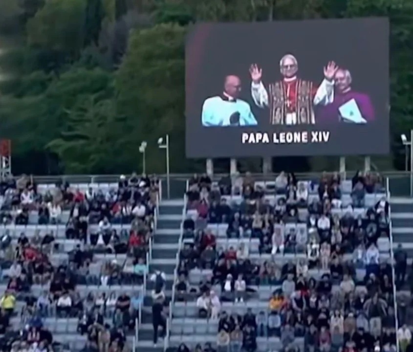 En medio del encuentro, correspondiente a la primera ronda, apareció una imagen de León XIV (Robert Francis Prevost) en la pantalla gigante de la Cancha Central junto al mensaje “Papa Leone XIV”, lo que provocó el delirio de todos los espectadores.