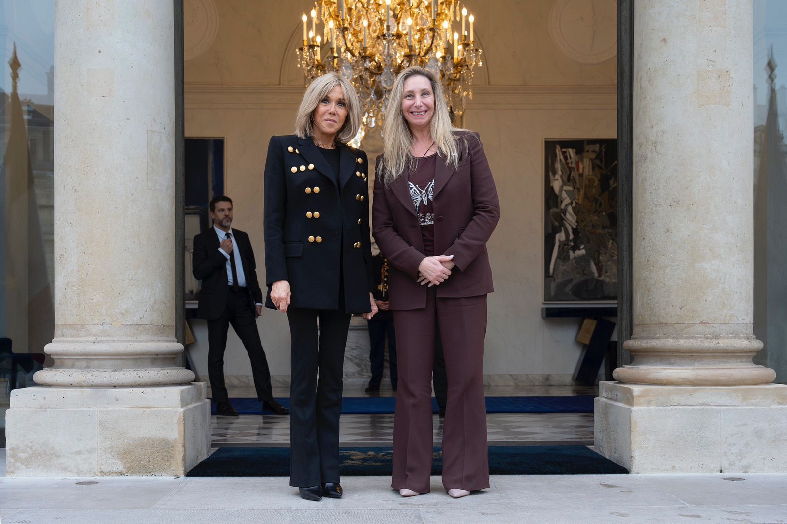 La Secretaria General de la Presidencia Karina Milei, junto al Embajador argentino en Francia Ian Sielecki, se reunió con la Primera Dama Brigitte Macron, en el Palacio del Eliseo en París.