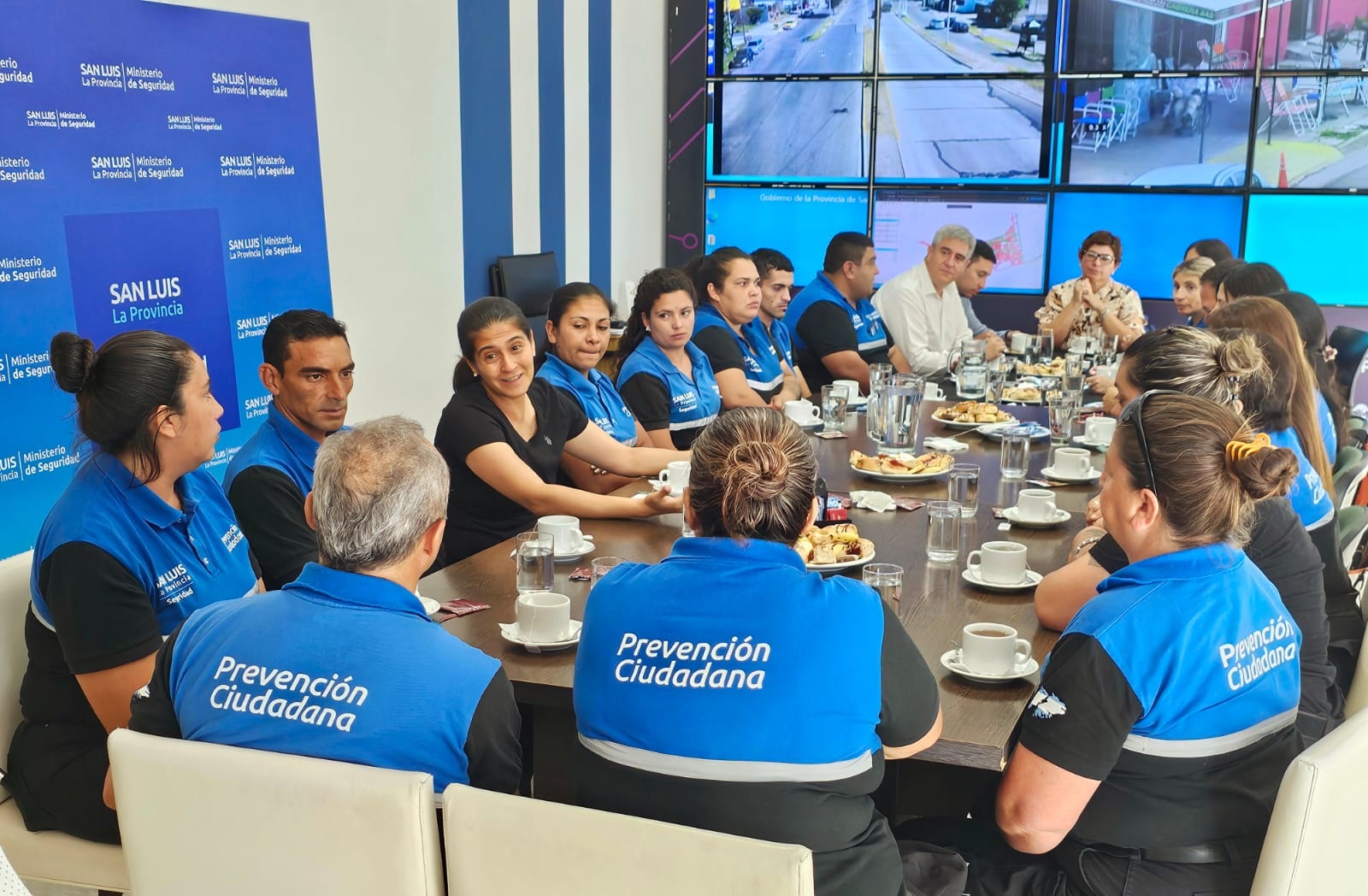 Durante la mañana de este lunes 25 de noviembre, la ministro de Seguridad, Nancy Sosa, organizó un desayuno para compartir con agentes de Prevención Ciudadana que sobresalieron en su profesión. Participó personal de patrullas de capital, Villa Mercedes y Fraga, todos reconocidos por la Ministro por haber intervenido en situaciones puntuales para proteger a la comunidad, ejecutando los conocimientos que adquirieron en las capacitaciones.