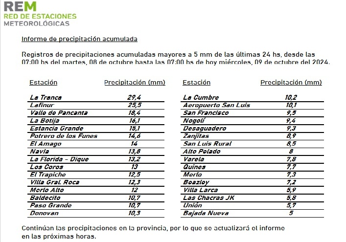 El viernes 11 de octubre el cielo estará algo a parcialmente nublado con chance de precipitaciones desde la tarde principalmente en el sur provincial. Las mínimas serán de 11°C y las máximas de 24°C, en promedio. El viento predominante será leve a regular del sureste con ráfagas fuertes.
